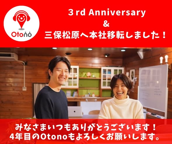 いつもお力添え・ご支援をくださる皆様へ株式会社Otono は本日8月15日をもって、会社設立から3年が経過致しました。