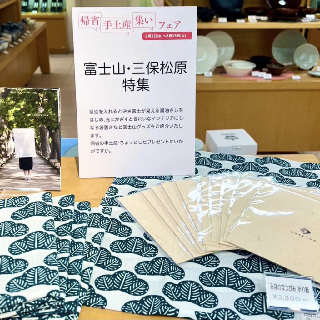 「みほのまつがみ」や松葉風呂など、三保ならではのアイテムも並びます🌲
